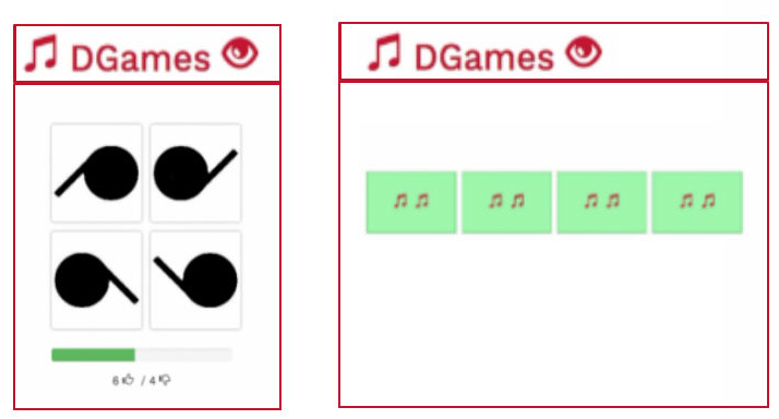 Beispiel visuelles Spiel (r) und akustisches Spiel (l)