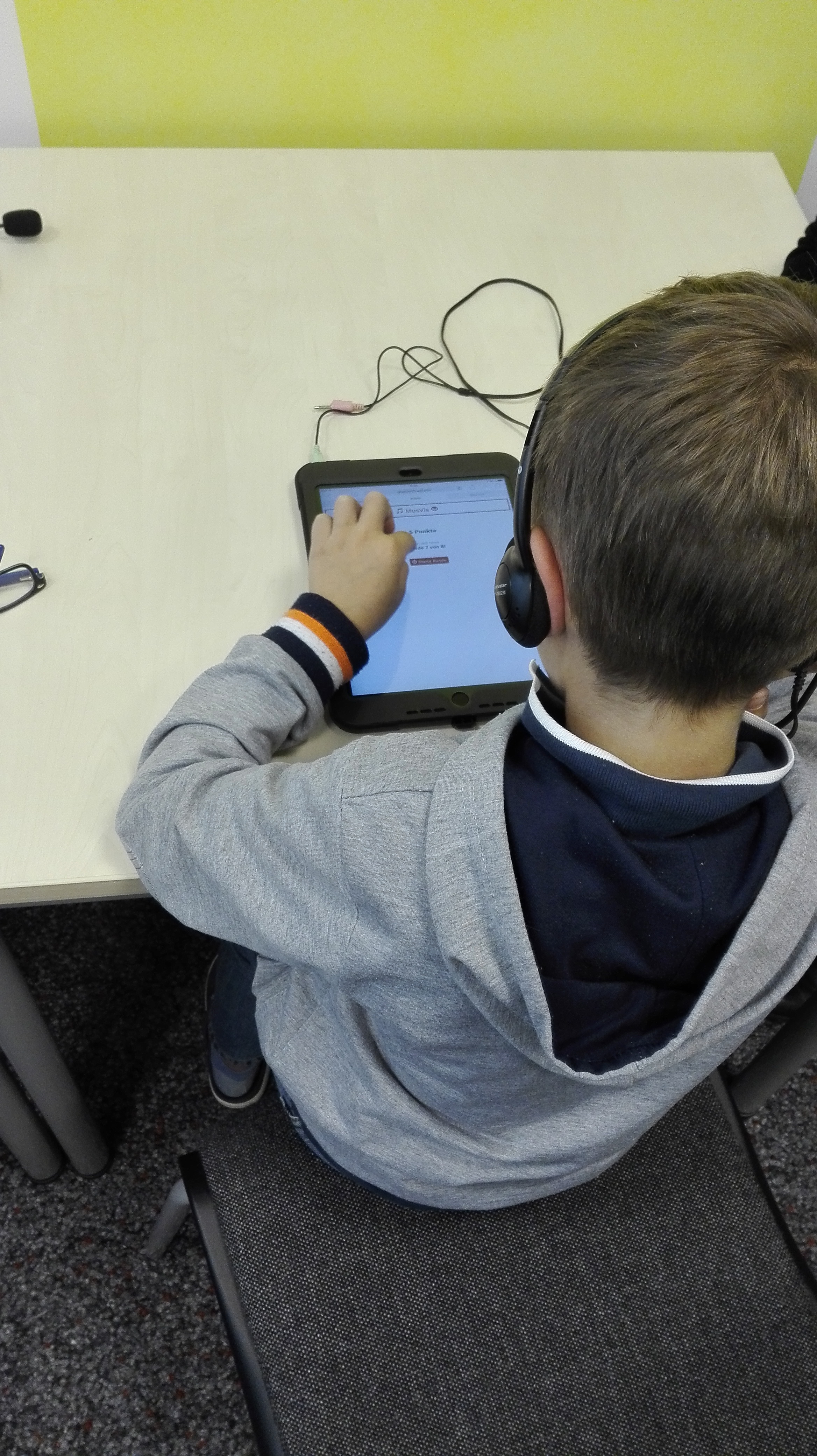 Teilnehmer spielt das akustische Spiel.