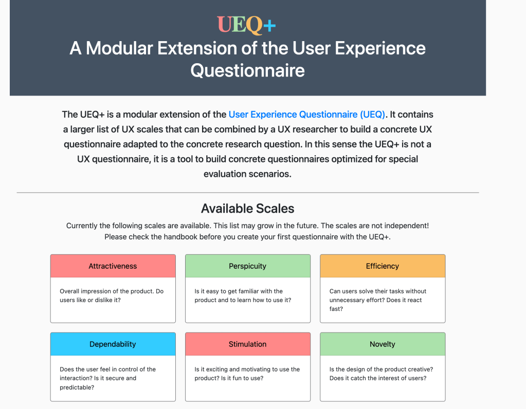User Experience Questionnaire (UEQ): https://ueqplus.ueq-research.org/
